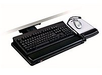 Versatile tray for your keyboard Center-arm model is perfect for limited office space or a corner workstation. Features an extended-arm design, height, tilt and swivel adjustments, a 3M gel wrist rest for both keyboard and mouse, and a right/left-handed, interchangeable sliding mouse platform with a 3M Precise mousing surface. Accepts either standard or ergonomic keyboards. 3M (TM) Adjustable Keyboard Tray, Knob Adjustment is one of many Keyboard Managers & Drawers available through Office Depot. Made by 3M.